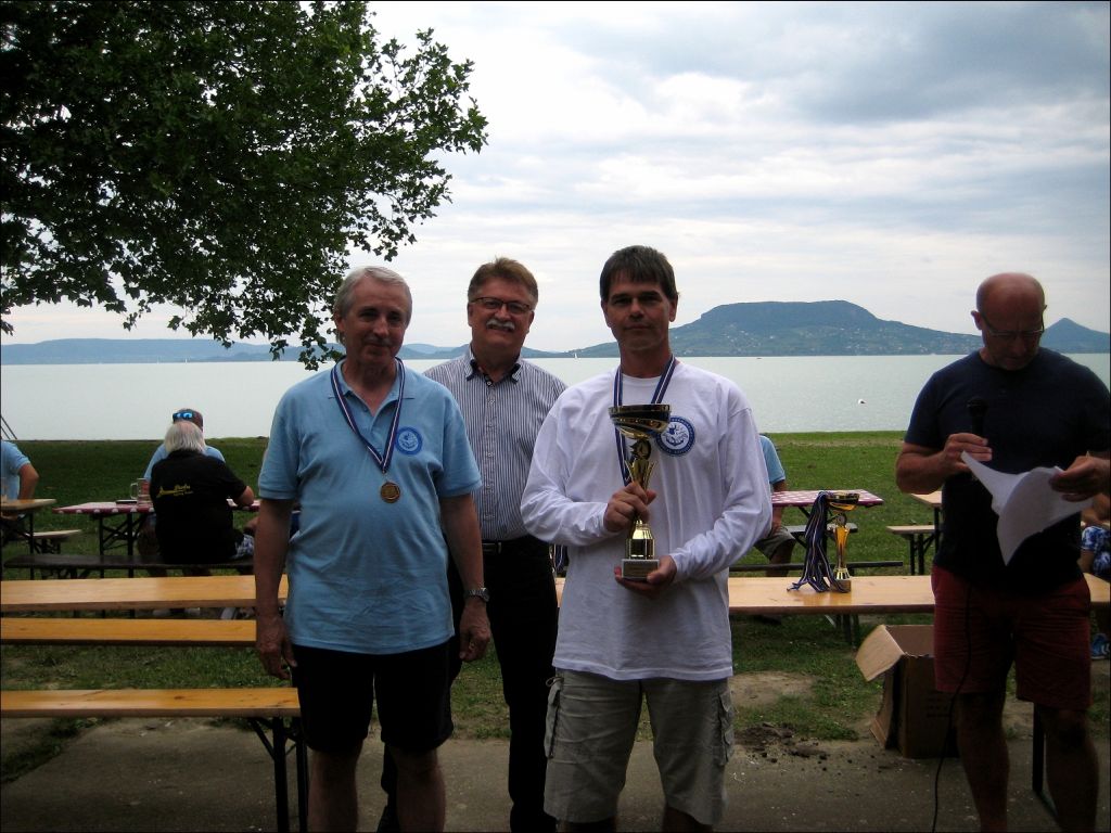 A vacsora (sertéspörkölt, főtt krumpli, ubi, no kenyér, fröccs – saját költségre) és a díjkiosztó (1 óra késéssel) a Tungi strandon volt. A díjakat a fonyódi polgármester adta át személyesen. Utána megvitorláztattuk egyik ismerősömet, aki hajóvásárláson gondolkodik. Mondtam, is, hogy Maxi 68-nál nem tudok jobbat ajánlani :-). Még aznap este, harmatgyenge szélben, kis „rásegítéssel” visszamentünk Szemesre.
